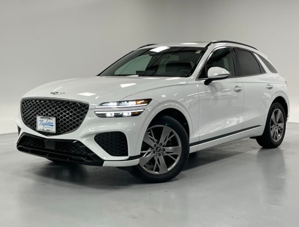 This GV70 is well equipped with Option Group 01, 4-Wheel Disc Brakes, 9 Speakers, ABS brakes, Adaptive suspension, Air Conditioning, Alloy wheels, AM/FM radio: SiriusXM, Android Auto & Apple CarPlay, Anti-whiplash front head restraints, Auto High-beam Headlights, Auto-dimming door mirrors, Auto-dimming Rear-View mirror, Automatic temperature control, Brake assist, Bumpers: body-color, Cargo Cover, Cargo Net, Delay-off headlights, Driver door bin, Driver vanity mirror, Dual front impact airbags, Dual front side impact airbags, Electronic Stability Control, Emergency communication system: Genesis Connected Services, Exterior Parking Camera Rear, First Aid Kit, Four wheel independent suspension, Front anti-roll bar, Front Bucket Seats, Front Center Armrest w/Storage, Front dual zone A/C, Front reading lights, Fully automatic headlights, Garage door transmitter: HomeLink, Heated & Ventilated Front Bucket Seats, Heated door mirrors, Heated front seats, Heated steering wheel, Illuminated entry, Knee airbag, Leather Seating Surfaces w/Mesh Insert, Leather steering wheel, Low tire pressure warning, Memory seat, Navigation System, Occupant sensing airbag, Outside temperature display, Overhead airbag, Overhead console, Panic alarm, Passenger door bin, Passenger vanity mirror, Power door mirrors, Power driver seat, Power Liftgate, Power moonroof, Power passenger seat, Power steering, Power windows, Radio: 14.5" Navigation System w/AM/FM/HD Radio, Rain sensing wipers, Rear anti-roll bar, Rear Parking Sensors, Rear reading lights, Rear seat center armrest, Rear window defroster, Rear window wiper, Remote keyless entry, Reversible Cargo Tray, Security system, Speed control, Speed-sensing steering, Speed-Sensitive Wipers, Split folding rear seat, Spoiler, Steering wheel memory, Steering wheel mounted audio controls, Tachometer, Telescoping steering wheel, Traction control, Trip computer, Turn signal indicator mirrors, Variably intermittent wipers, Ventilated front seats, and Wheels: 19" Dark Hyper Silver Sport Alloy.