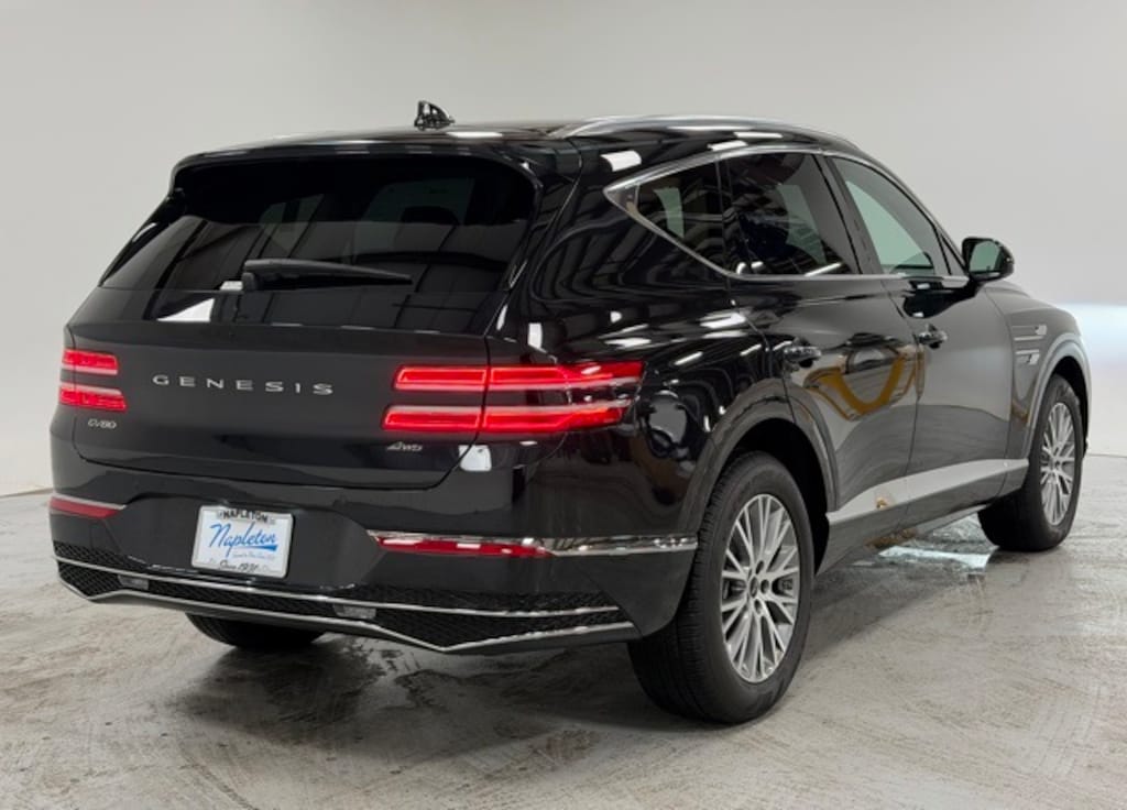 This GV80 is well equipped with Option Group 01, 12 Speakers, 4-Wheel Disc Brakes, ABS brakes, Air Conditioning, Alloy wheels, AM/FM radio: SiriusXM, Anti-whiplash front head restraints, Auto High-beam Headlights, Auto tilt-away steering wheel, Auto-dimming door mirrors, Auto-dimming Rear-View mirror, Auto-leveling suspension, Automatic temperature control, Brake assist, Bumpers: body-color, Compass, Delay-off headlights, Driver door bin, Driver vanity mirror, Dual front impact airbags, Dual front side impact airbags, Electronic Stability Control, Emergency communication system: Genesis Connected Services, Exterior Parking Camera Rear, Four wheel independent suspension, Front anti-roll bar, Front Bucket Seats, Front Center Armrest, Front dual zone A/C, Front reading lights, Fully automatic headlights, Garage door transmitter: HomeLink, Heated door mirrors, Heated Front Bucket Seats, Heated front seats, Illuminated entry, Knee airbag, Leather steering wheel, Leatherette Seating Surfaces, Low tire pressure warning, Memory seat, Navigation System, Occupant sensing airbag, Outside temperature display, Overhead airbag, Overhead console, Panic alarm, Passenger door bin, Passenger vanity mirror, Power door mirrors, Power driver seat, Power Liftgate, Power passenger seat, Power steering, Power windows, Radio data system, Radio: AM/FM/SiriusXM/HD, Rain sensing wipers, Rear air conditioning, Rear anti-roll bar, Rear reading lights, Rear seat center armrest, Rear side impact airbag, Rear window defroster, Rear window wiper, Remote keyless entry, Security system, Speed control, Speed-sensing steering, Speed-Sensitive Wipers, Split folding rear seat, Spoiler, Steering wheel memory, Steering wheel mounted audio controls, Tachometer, Telescoping steering wheel, Tilt steering wheel, Traction control, Trip computer, Turn signal indicator mirrors, Variably intermittent wipers, and Wheels: 19" x 8.5J Medium Metallic Gray Alloy.