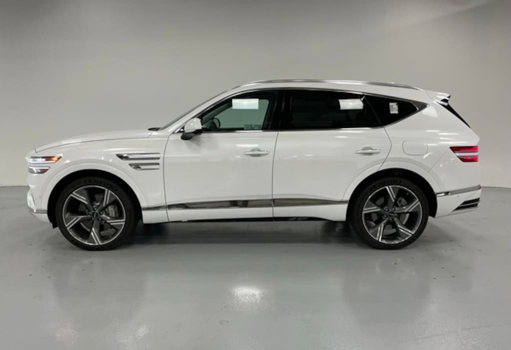 This GV80 is well equipped with Option Group 01, 18 Speakers, 4-Wheel Disc Brakes, ABS brakes, Adaptive suspension, Air Conditioning, Alloy wheels, AM/FM radio: SiriusXM, Anti-whiplash front head restraints, Auto High-beam Headlights, Auto tilt-away steering wheel, Auto-dimming door mirrors, Auto-dimming Rear-View mirror, Automatic temperature control, Brake assist, Bumpers: body-color, Cargo Net, Compass, Delay-off headlights, Driver door bin, Driver vanity mirror, Dual front impact airbags, Dual front side impact airbags, Electronic Stability Control, Emergency communication system: Genesis Connected Services, Exterior Parking Camera Rear, First Aid Kit, Four wheel independent suspension, Fragrance Cartridge, Front anti-roll bar, Front Bucket Seats, Front Center Armrest, Front dual zone A/C, Front reading lights, Fully automatic headlights, Garage door transmitter: HomeLink, Genuine wood console insert, Genuine wood dashboard insert, Genuine wood door panel insert, Heads-Up Display, Heated & Ventilated Front Bucket Seats, Heated door mirrors, Heated front seats, Heated rear seats, Heated steering wheel, Illuminated entry, Knee airbag, Leather Seating Surfaces, Leather steering wheel, Low tire pressure warning, Memory seat, Navigation System, NFC Key Card, Occupant sensing airbag, Outside temperature display, Overhead airbag, Overhead console, Panic alarm, Passenger door bin, Passenger vanity mirror, Power door mirrors, Power driver seat, Power Liftgate, Power moonroof, Power passenger seat, Power steering, Power windows, Radio data system, Radio: AM/FM/SiriusXM/HD Bang & Olufsen Sound Sys, Rain sensing wipers, Rear air conditioning, Rear anti-roll bar, Rear reading lights, Rear seat center armrest, Rear side impact airbag, Rear window defroster, Rear window wiper, Remote keyless entry, Security system, Speed control, Speed-sensing steering, Speed-Sensitive Wipers, Split folding rear seat, Spoiler, Steering wheel memory, Steering wheel mounted audio controls, Tachometer, Telescoping steering wheel, Tilt steering wheel, Traction control, Trip computer, Turn signal indicator mirrors, Variably intermittent wipers, Ventilated front seats, and Wheels: 22" x 9.5J Dark Gray Matte Alloy.