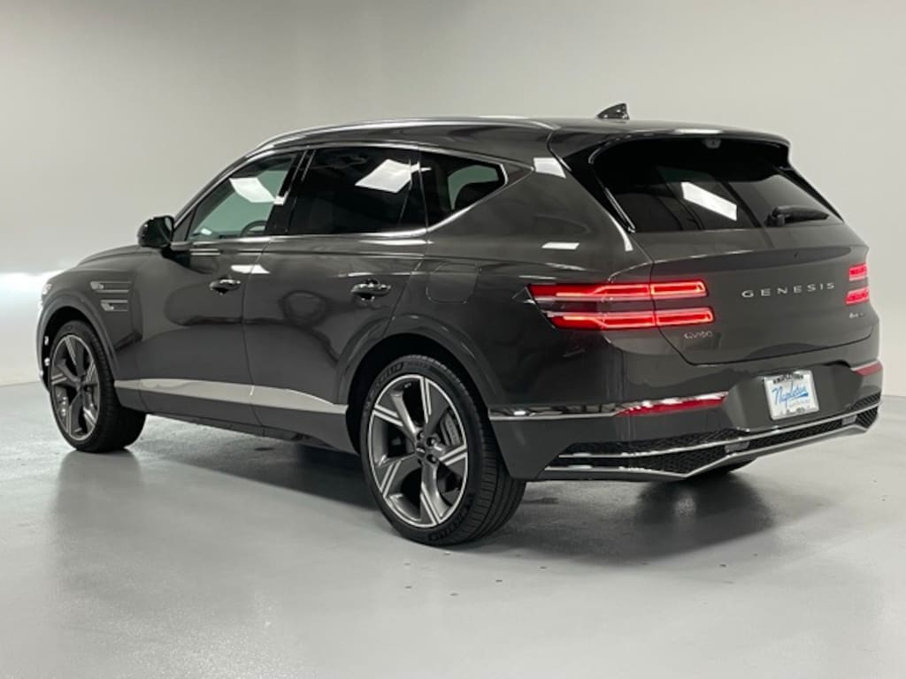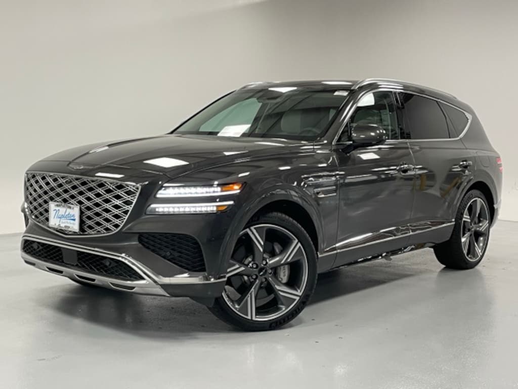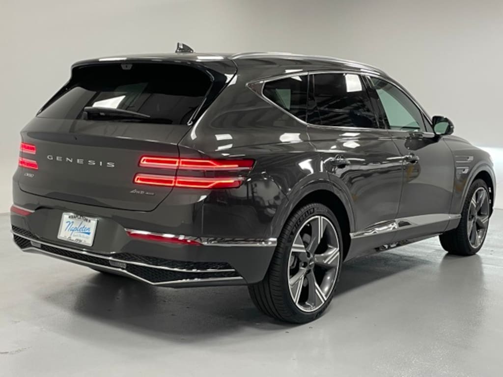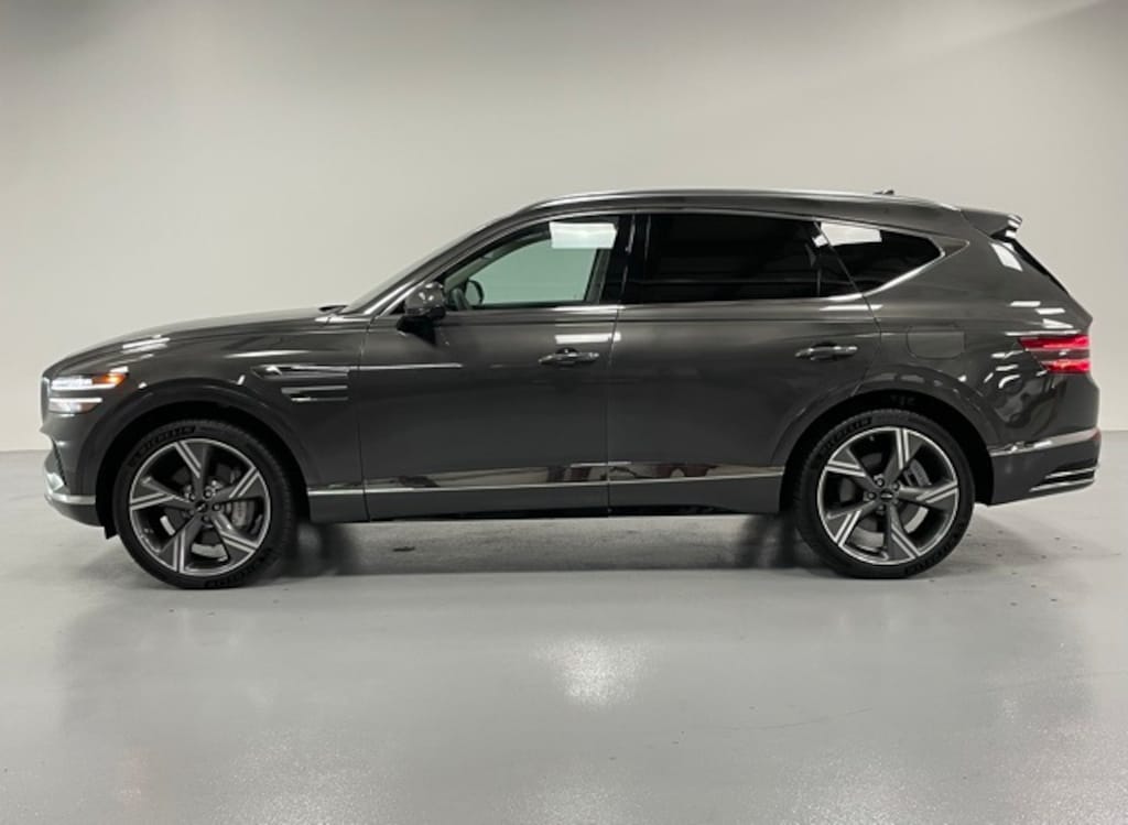 This GV80 is well equipped with Option Group 01, 18 Speakers, 4-Wheel Disc Brakes, ABS brakes, Adaptive suspension, Air Conditioning, Alloy wheels, AM/FM radio: SiriusXM, Anti-whiplash front head restraints, Auto High-beam Headlights, Auto tilt-away steering wheel, Auto-dimming door mirrors, Auto-dimming Rear-View mirror, Automatic temperature control, Brake assist, Bumpers: body-color, Cargo Blocks, Compass, Delay-off headlights, Driver door bin, Driver vanity mirror, Dual front impact airbags, Dual front side impact airbags, Electronic Stability Control, Emergency communication system: Genesis Connected Services, Exterior Parking Camera Rear, First Aid Kit, Four wheel independent suspension, Front anti-roll bar, Front Bucket Seats, Front Center Armrest, Front dual zone A/C, Front reading lights, Fully automatic headlights, Garage door transmitter: HomeLink, Genuine wood console insert, Genuine wood dashboard insert, Genuine wood door panel insert, Heads-Up Display, Heated & Ventilated Front Bucket Seats, Heated door mirrors, Heated front seats, Heated rear seats, Heated steering wheel, Illuminated entry, Knee airbag, Leather steering wheel, Low tire pressure warning, Memory seat, Nappa Leather Seating Surfaces, Navigation System, NFC Key Card, Occupant sensing airbag, Outside temperature display, Overhead airbag, Overhead console, Panic alarm, Passenger door bin, Passenger vanity mirror, Power door mirrors, Power driver seat, Power Liftgate, Power moonroof, Power passenger seat, Power steering, Power windows, Radio data system, Radio: AM/FM/SiriusXM/HD Bang & Olufsen Sound Sys, Rain sensing wipers, Rear air conditioning, Rear anti-roll bar, Rear reading lights, Rear seat center armrest, Rear side impact airbag, Rear window defroster, Rear window wiper, Remote keyless entry, Roof Rack Cross Bars, Security system, Speed control, Speed-sensing steering, Speed-Sensitive Wipers, Split folding rear seat, Spoiler, Steering wheel memory, Steering wheel mounted audio controls, Tachometer, Telescoping steering wheel, Tilt steering wheel, Traction control, Trip computer, Turn signal indicator mirrors, Variably intermittent wipers, Ventilated front seats, Ventilated rear seats, and Wheels: 22" x 9.5J Dark Gray Matte Alloy.