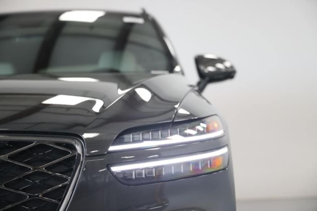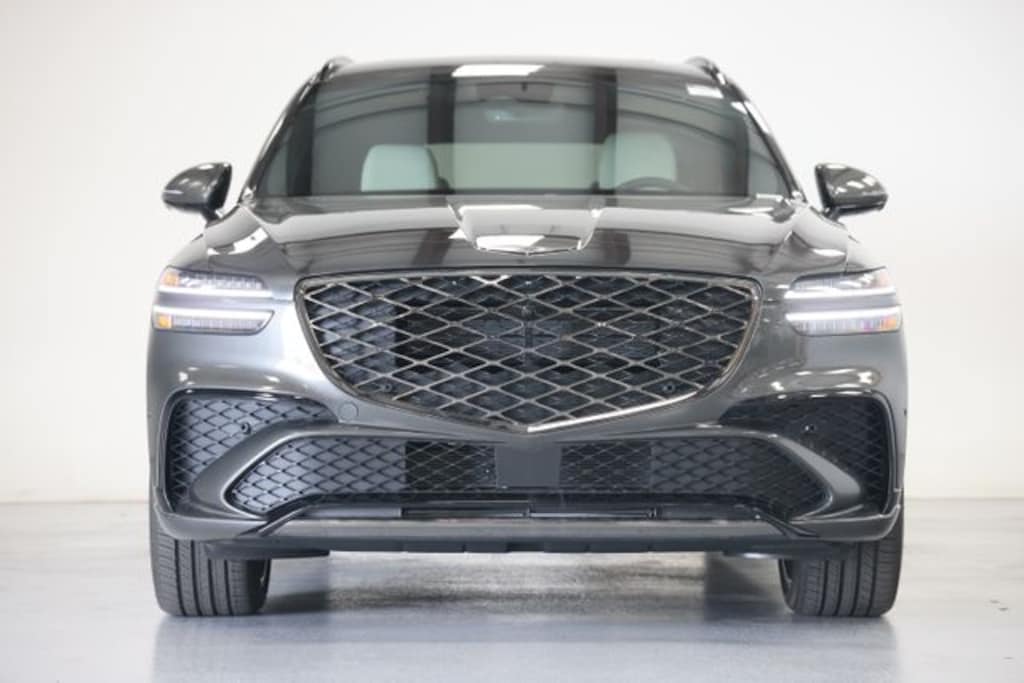 This GV70 is well equipped with Option Group 01, 16 Speakers, 4-Wheel Disc Brakes, ABS brakes, Adaptive suspension, Air Conditioning, Alloy wheels, AM/FM radio: SiriusXM, Android Auto & Apple CarPlay, Anti-whiplash front head restraints, Auto High-beam Headlights, Auto-dimming door mirrors, Auto-dimming Rear-View mirror, Automatic temperature control, Brake assist, Bumpers: body-color, Cargo Block, Cargo Net, Delay-off headlights, Driver door bin, Driver vanity mirror, Dual front impact airbags, Dual front side impact airbags, Electronic Stability Control, Emergency communication system: Genesis Connected Services, Exterior Parking Camera Rear, First Aid Kit, Four wheel independent suspension, Front anti-roll bar, Front Bucket Seats, Front Center Armrest w/Storage, Front dual zone A/C, Front reading lights, Fully automatic headlights, Garage door transmitter: HomeLink, Heads-Up Display, Heated and Ventilated Front Bucket Seats, Heated door mirrors, Heated front seats, Heated rear seats, Heated steering wheel, Illuminated entry, Knee airbag, Leather steering wheel, Low tire pressure warning, Memory seat, Nappa Leather Seating Surfaces, Navigation System, NFC Key Card, Occupant sensing airbag, Outside temperature display, Overhead airbag, Overhead console, Panic alarm, Passenger door bin, Passenger vanity mirror, Power door mirrors, Power driver seat, Power Liftgate, Power moonroof, Power passenger seat, Power steering, Power windows, Radio: 14.5" Navigation System with AM/FM/HD, Rain sensing wipers, Rear air conditioning, Rear anti-roll bar, Rear reading lights, Rear seat center armrest, Rear window defroster, Rear window wiper, Remote keyless entry, Roadside Assistance Kit, Security system, Severe Weather Kit, Speed control, Speed-sensing steering, Speed-Sensitive Wipers, Split folding rear seat, Spoiler, Steering wheel memory, Steering wheel mounted audio controls, Tachometer, Telescoping steering wheel, Tilt steering wheel, Traction control, Trip computer, Turn signal indicator mirrors, Up Seatback Cargo Mat, Variably intermittent wipers, Ventilated front seats, and Wheels: 21" Dark Sputtering Alloy.