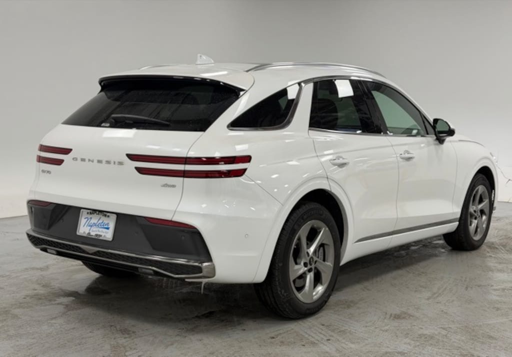 This GV70 is well equipped with Option Group 01, 16 Speakers, 4-Wheel Disc Brakes, ABS brakes, Air Conditioning, Alloy wheels, AM/FM radio: SiriusXM, Android Auto & Apple CarPlay, Anti-whiplash front head restraints, Auto High-beam Headlights, Auto-dimming door mirrors, Auto-dimming Rear-View mirror, Automatic temperature control, Brake assist, Bumpers: body-color, Cargo Net, Cargo Tray, Delay-off headlights, Driver door bin, Driver vanity mirror, Dual front impact airbags, Dual front side impact airbags, Electronic Stability Control, Emergency communication system: Genesis Connected Services, Exterior Parking Camera Rear, First Aid Kit, Four wheel independent suspension, Front anti-roll bar, Front Bucket Seats, Front Center Armrest w/Storage, Front dual zone A/C, Front reading lights, Fully automatic headlights, Garage door transmitter: HomeLink, Heated and Ventilated Front Bucket Seats, Heated door mirrors, Heated front seats, Heated steering wheel, Illuminated entry, Knee airbag, Leather Seating Surfaces, Leather steering wheel, Low tire pressure warning, Memory seat, Navigation System, Occupant sensing airbag, Outside temperature display, Overhead airbag, Overhead console, Panic alarm, Passenger door bin, Passenger vanity mirror, Power door mirrors, Power driver seat, Power Liftgate, Power moonroof, Power passenger seat, Power steering, Power windows, Radio: 14.5" Navigation System with AM/FM/HD, Rain sensing wipers, Rear anti-roll bar, Rear reading lights, Rear seat center armrest, Rear window defroster, Rear window wiper, Remote keyless entry, Security system, Speed control, Speed-sensing steering, Speed-Sensitive Wipers, Split folding rear seat, Spoiler, Steering wheel memory, Steering wheel mounted audio controls, Tachometer, Telescoping steering wheel, Tilt steering wheel, Traction control, Trip computer, Turn signal indicator mirrors, Variably intermittent wipers, Ventilated front seats, Wheel Locks, and Wheels: 19" Light Hyper Silver Alloy.