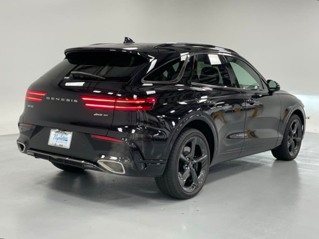 This GV70 is well equipped with Option Group 01, 16 Speakers, 4-Wheel Disc Brakes, ABS brakes, Adaptive suspension, Air Conditioning, Alloy wheels, AM/FM radio: SiriusXM, Android Auto & Apple CarPlay, Anti-whiplash front head restraints, Auto High-beam Headlights, Auto-dimming door mirrors, Auto-dimming Rear-View mirror, Automatic temperature control, Brake assist, Bumpers: body-color, Cargo Net, Cargo Tray, Delay-off headlights, Driver door bin, Driver vanity mirror, Dual front impact airbags, Dual front side impact airbags, Electronic Stability Control, Emergency communication system: Genesis Connected Services, Exterior Parking Camera Rear, First Aid Kit, Four wheel independent suspension, Front anti-roll bar, Front Bucket Seats, Front Center Armrest w/Storage, Front dual zone A/C, Front reading lights, Fully automatic headlights, Garage door transmitter: HomeLink, Heads-Up Display, Heated & Ventilated Front Bucket Seats, Heated door mirrors, Heated front seats, Heated rear seats, Heated steering wheel, Illuminated entry, Knee airbag, Leather steering wheel, Low tire pressure warning, Memory seat, Nappa Leather Seating Surfaces, Navigation System, NFC Key Card, Occupant sensing airbag, Outside temperature display, Overhead airbag, Overhead console, Panic alarm, Passenger door bin, Passenger vanity mirror, Power door mirrors, Power driver seat, Power Liftgate, Power moonroof, Power passenger seat, Power steering, Power windows, Radio: 14.5" Navigation System w/AM/FM/HD Radio, Rain sensing wipers, Rear air conditioning, Rear anti-roll bar, Rear reading lights, Rear seat center armrest, Rear window defroster, Rear window wiper, Remote keyless entry, Roof Rack Cross Bars, Security system, Speed control, Speed-sensing steering, Speed-Sensitive Wipers, Split folding rear seat, Spoiler, Steering wheel memory, Steering wheel mounted audio controls, Tachometer, Telescoping steering wheel, Tilt steering wheel, Traction control, Trip computer, Turn signal indicator mirrors, Variably intermittent wipers, Ventilated front seats, and Wheels: 21" Dark Sputtering Alloy.