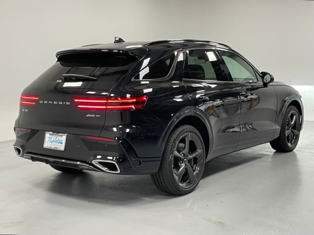 This GV70 is well equipped with Option Group 01, 16 Speakers, 4-Wheel Disc Brakes, ABS brakes, Adaptive suspension, Air Conditioning, Alloy wheels, AM/FM radio: SiriusXM, Android Auto & Apple CarPlay, Anti-whiplash front head restraints, Auto High-beam Headlights, Auto-dimming door mirrors, Auto-dimming Rear-View mirror, Automatic temperature control, Brake assist, Bumpers: body-color, Cargo Cover, Cargo Net, Cargo Tray, Delay-off headlights, Door Pocket Film, Driver door bin, Driver vanity mirror, Dual front impact airbags, Dual front side impact airbags, Electronic Stability Control, Emergency communication system: Genesis Connected Services, Exterior Parking Camera Rear, First Aid Kit, Four wheel independent suspension, Front anti-roll bar, Front Bucket Seats, Front Center Armrest w/Storage, Front dual zone A/C, Front reading lights, Fully automatic headlights, Garage door transmitter: HomeLink, Heads-Up Display, Heated & Ventilated Front Bucket Seats, Heated door mirrors, Heated front seats, Heated rear seats, Heated steering wheel, Illuminated entry, Knee airbag, Leather steering wheel, Low tire pressure warning, Memory seat, Nappa Leather Seating Surfaces, Navigation System, NFC Key Card, Occupant sensing airbag, Outside temperature display, Overhead airbag, Overhead console, Panic alarm, Passenger door bin, Passenger vanity mirror, Power door mirrors, Power driver seat, Power Liftgate, Power moonroof, Power passenger seat, Power steering, Power windows, Radio: 14.5" Navigation System w/AM/FM/HD Radio, Rain sensing wipers, Rear air conditioning, Rear anti-roll bar, Rear reading lights, Rear seat center armrest, Rear window defroster, Rear window wiper, Remote keyless entry, Security system, Speed control, Speed-sensing steering, Speed-Sensitive Wipers, Split folding rear seat, Spoiler, Steering wheel memory, Steering wheel mounted audio controls, Tachometer, Telescoping steering wheel, Tilt steering wheel, Traction control, Trip computer, Turn signal indicator mirrors, Variably intermittent wipers, Ventilated front seats, Wheel Locks, and Wheels: 21" Dark Sputtering Alloy.