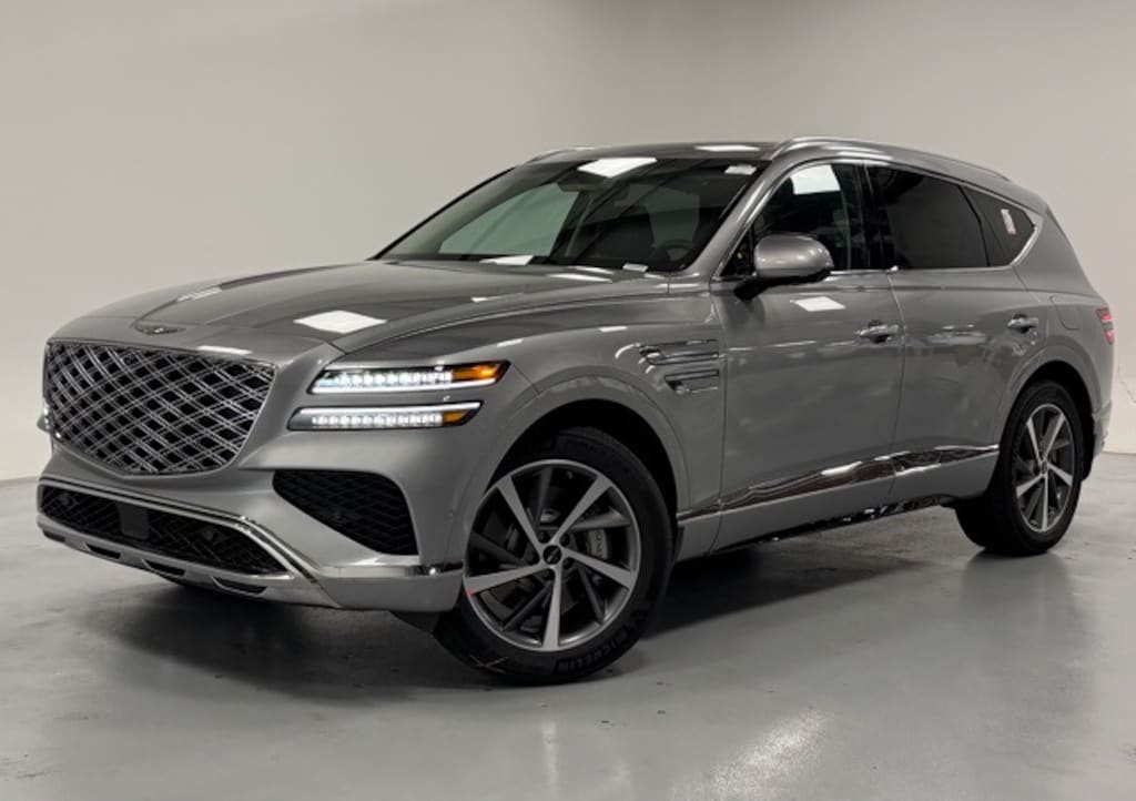 This GV80 is well equipped with Option Group 01, 18 Speakers, 3rd row seats: split-bench, 4-Wheel Disc Brakes, ABS brakes, Air Conditioning, Alloy wheels, AM/FM radio: SiriusXM, Anti-whiplash front head restraints, Auto High-beam Headlights, Auto tilt-away steering wheel, Auto-dimming door mirrors, Auto-dimming Rear-View mirror, Auto-leveling suspension, Automatic temperature control, Brake assist, Bumpers: body-color, Cargo Net, Compass, Delay-off headlights, Driver door bin, Driver vanity mirror, Dual front impact airbags, Dual front side impact airbags, Electronic Stability Control, Emergency communication system: Genesis Connected Services, Exterior Parking Camera Rear, First Aid Kit, Four wheel independent suspension, Front and Rear Mudguards, Front anti-roll bar, Front Bucket Seats, Front Center Armrest, Front dual zone A/C, Front reading lights, Fully automatic headlights, Garage door transmitter: HomeLink, Genuine wood console insert, Genuine wood dashboard insert, Genuine wood door panel insert, Heated and Ventilated Front Bucket Seats, Heated door mirrors, Heated front seats, Heated steering wheel, Illuminated entry, Knee airbag, Leather Seating Surfaces, Leather steering wheel, Low tire pressure warning, Memory seat, Navigation System, NFC Key Card, Occupant sensing airbag, Outside temperature display, Overhead airbag, Overhead console, Panic alarm, Passenger door bin, Passenger vanity mirror, Power door mirrors, Power driver seat, Power Liftgate, Power moonroof, Power passenger seat, Power steering, Power windows, Radio data system, Radio: AM/FM/HD Bose Premium Sound System, Rain sensing wipers, Rear air conditioning, Rear anti-roll bar, Rear dual zone A/C, Rear reading lights, Rear seat center armrest, Rear side impact airbag, Rear window defroster, Rear window wiper, Reclining 3rd row seat, Remote keyless entry, Roadside Assistance Kit, Security system, Speed control, Speed-sensing steering, Speed-Sensitive Wipers, Split folding rear seat, Spoiler, Steering wheel memory, Steering wheel mounted audio controls, Tachometer, Telescoping steering wheel, Tilt steering wheel, Traction control, Trip computer, Turn signal indicator mirrors, Variably intermittent wipers, Ventilated front seats, and Wheels: 20" x 8.5J Dark Gray Matte Alloy.
