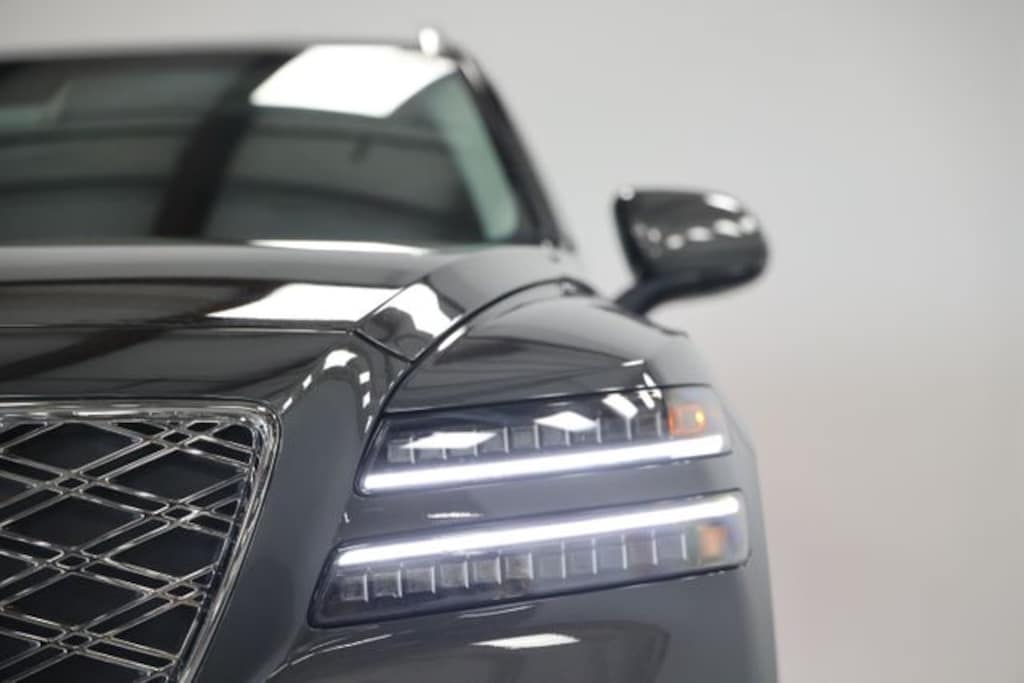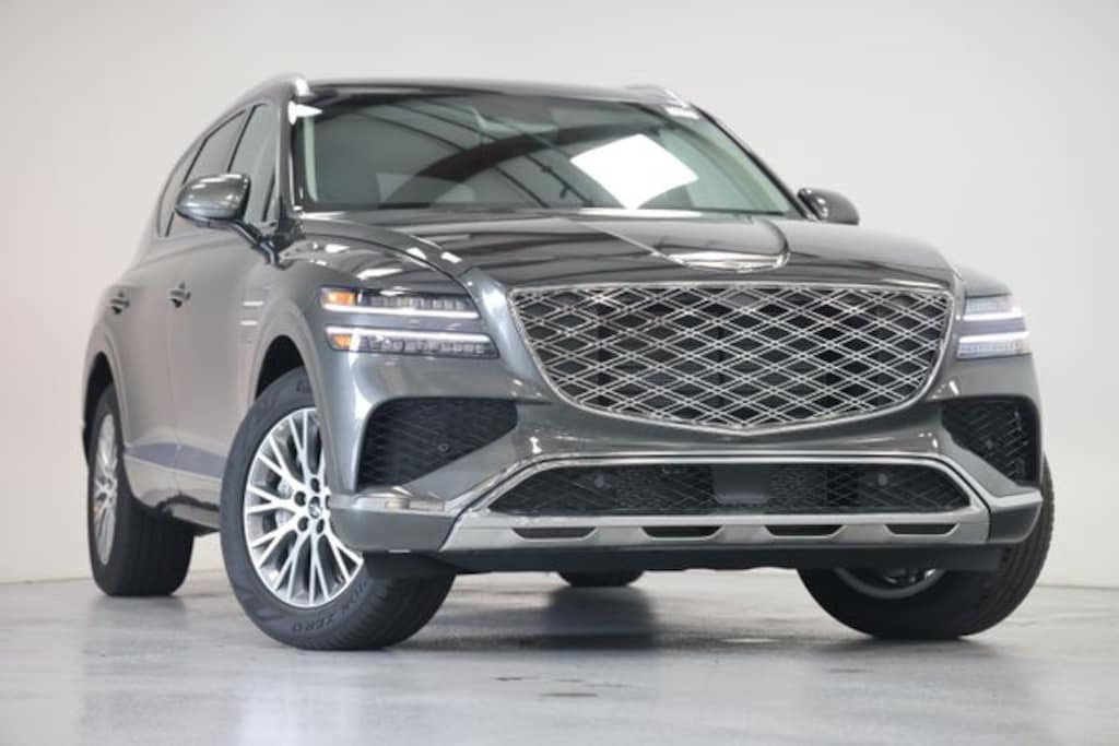 This GV80 is well equipped with Option Group 01, 12 Speakers, 4-Wheel Disc Brakes, ABS brakes, Air Conditioning, All Season Fitted Liners, Alloy wheels, AM/FM radio: SiriusXM, Anti-whiplash front head restraints, Auto High-beam Headlights, Auto tilt-away steering wheel, Auto-dimming door mirrors, Auto-dimming Rear-View mirror, Auto-leveling suspension, Automatic temperature control, Brake assist, Bumpers: body-color, Cargo Mat, Cargo Net, Compass, Delay-off headlights, Driver door bin, Driver vanity mirror, Dual front impact airbags, Dual front side impact airbags, Electronic Stability Control, Emergency communication system: Genesis Connected Services, Exterior Parking Camera Rear, First Aid Kit, Four wheel independent suspension, Fragrance Cartridge, Front anti-roll bar, Front Bucket Seats, Front Center Armrest, Front dual zone A/C, Front reading lights, Fully automatic headlights, Garage door transmitter: HomeLink, Heated door mirrors, Heated Front Bucket Seats, Heated front seats, Illuminated Door Scuff Plates, Illuminated entry, Knee airbag, Leather steering wheel, Leatherette Seating Surfaces, Low tire pressure warning, Memory seat, Navigation System, Occupant sensing airbag, Outside temperature display, Overhead airbag, Overhead console, Panic alarm, Passenger door bin, Passenger vanity mirror, Power door mirrors, Power driver seat, Power Liftgate, Power passenger seat, Power steering, Power windows, Radio data system, Radio: AM/FM/HD, Rain sensing wipers, Rear air conditioning, Rear anti-roll bar, Rear reading lights, Rear seat center armrest, Rear side impact airbag, Rear window defroster, Rear window wiper, Remote keyless entry, Roadside Assistance Kit, Security system, Speed control, Speed-sensing steering, Speed-Sensitive Wipers, Split folding rear seat, Spoiler, Steering wheel memory, Steering wheel mounted audio controls, Tachometer, Telescoping steering wheel, Tilt steering wheel, Traction control, Trip computer, Turn signal indicator mirrors, Variably intermittent wipers, and Wheels: 19" x 8.5J Medium Metallic Gray Alloy.