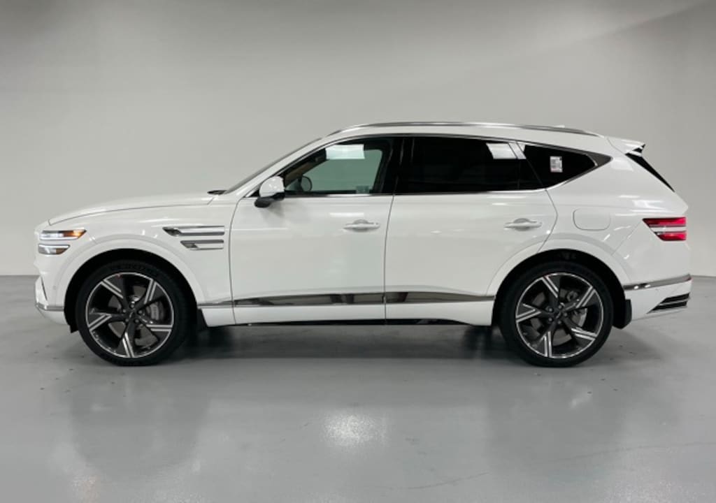 This GV80 is well equipped with Option Group 01, 18 Speakers, 3rd row seats: split-bench, 4-Wheel Disc Brakes, ABS brakes, Adaptive suspension, Air Conditioning, Alloy wheels, AM/FM radio: SiriusXM, Anti-whiplash front head restraints, Auto High-beam Headlights, Auto tilt-away steering wheel, Auto-dimming door mirrors, Auto-dimming Rear-View mirror, Automatic temperature control, Brake assist, Bumpers: body-color, Cargo Net, Compass, Delay-off headlights, Driver door bin, Driver vanity mirror, Dual front impact airbags, Dual front side impact airbags, Electronic Stability Control, Emergency communication system: Genesis Connected Services, Exterior Parking Camera Rear, First Aid Kit, Four wheel independent suspension, Fragrance Cartridge, Front and Rear Mudguards, Front anti-roll bar, Front Bucket Seats, Front Center Armrest, Front dual zone A/C, Front reading lights, Fully automatic headlights, Garage door transmitter: HomeLink, Genuine wood console insert, Genuine wood dashboard insert, Genuine wood door panel insert, Heads-Up Display, Heated and Ventilated Front Bucket Seats, Heated door mirrors, Heated front seats, Heated rear seats, Heated steering wheel, Illuminated entry, Knee airbag, Leather steering wheel, Low tire pressure warning, Memory seat, Nappa Leather Seating Surfaces, Navigation System, NFC Key Card, Occupant sensing airbag, Outside temperature display, Overhead airbag, Overhead console, Panic alarm, Passenger door bin, Passenger vanity mirror, Power door mirrors, Power driver seat, Power Liftgate, Power moonroof, Power passenger seat, Power steering, Power windows, Radio data system, Radio: AM/FM/HD Bose Premium Sound System, Rain sensing wipers, Rear air conditioning, Rear anti-roll bar, Rear dual zone A/C, Rear reading lights, Rear seat center armrest, Rear side impact airbag, Rear window defroster, Rear window wiper, Reclining 3rd row seat, Remote keyless entry, Roadside Assistance Kit, Security system, Speed control, Speed-sensing steering, Speed-Sensitive Wipers, Split folding rear seat, Spoiler, Steering wheel memory, Steering wheel mounted audio controls, Tachometer, Telescoping steering wheel, Tilt steering wheel, Traction control, Trip computer, Turn signal indicator mirrors, Variably intermittent wipers, Ventilated front seats, Ventilated rear seats, and Wheels: 22" x 9.5J Dark Gray Matte Alloy.