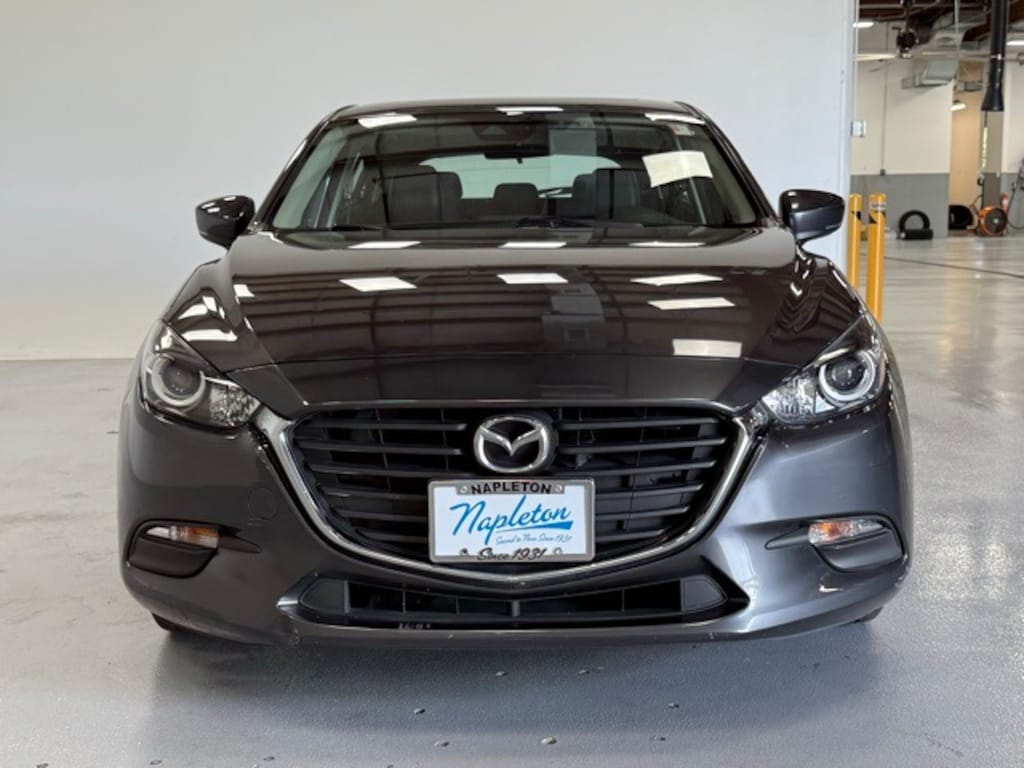 This Mazda Mazda3 is well equipped with Bose/Moonroof/Satellite Radio Package (Bose 9 Speaker Surround Sound Audio System, Power Sliding-Glass Moonroof w/Interior Sunshade, Roof-Mounted Shark Fin Antenna, and SiriusXM Satellite Radio), 4-Wheel Disc Brakes, 6 Speakers, ABS brakes, Air Conditioning, Alloy wheels, AM/FM radio, Automatic temperature control, Brake assist, Bumpers: body-color, Driver door bin, Driver vanity mirror, Dual front impact airbags, Dual front side impact airbags, Electronic Stability Control, Emergency communication system: MAZDA CONNECT, Exterior Parking Camera Rear, Four wheel independent suspension, Front anti-roll bar, Front Bucket Seats, Front Center Armrest, Front dual zone A/C, Front reading lights, Fully automatic headlights, Heated door mirrors, Heated front seats, Illuminated entry, Leather Shift Knob, Leatherette Seat Trim, Low tire pressure warning, Machine Gray Metallic Paint Charge, MAZDA CONNECT Infotainment System Voice Command, Occupant sensing airbag, Outside temperature display, Overhead airbag, Overhead console, Panic alarm, Passenger door bin, Passenger vanity mirror, Power door mirrors, Power driver seat, Power steering, Power windows, Radio data system, Radio: AM/FM/HD Audio System, Rain sensing wipers, Rear anti-roll bar, Rear seat center armrest, Rear window defroster, Rear window wiper, Remote keyless entry, Speed control, Speed-sensing steering, Split folding rear seat, Spoiler, Steering wheel mounted audio controls, Tachometer, Telescoping steering wheel, Tilt steering wheel, Traction control, Trip computer, Turn signal indicator mirrors, Variable Heated Reclining Front Bucket Seats, Variably intermittent wipers, and Wheels: 18" x 7.0J" Dark Silver Finish Alloy.
